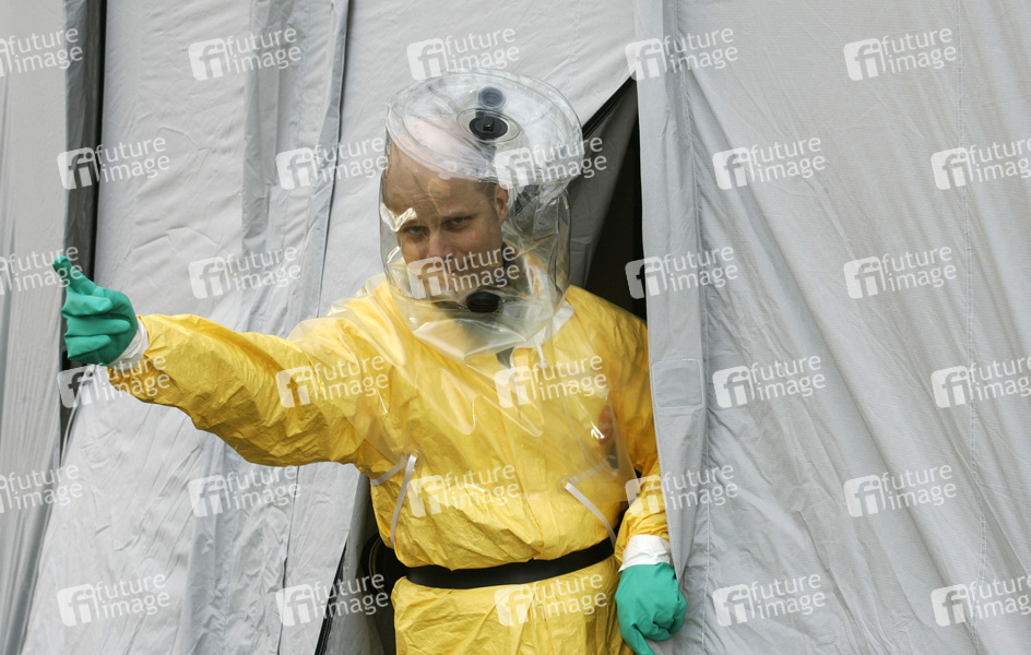 Dekontaminationsübung im Krankenhaus für die Notfallvorsorge bei einem Schadensereignis mit atomaren, chemischen oder biologischen Stoffen, Vivantes Klinikum im Friedrichshain