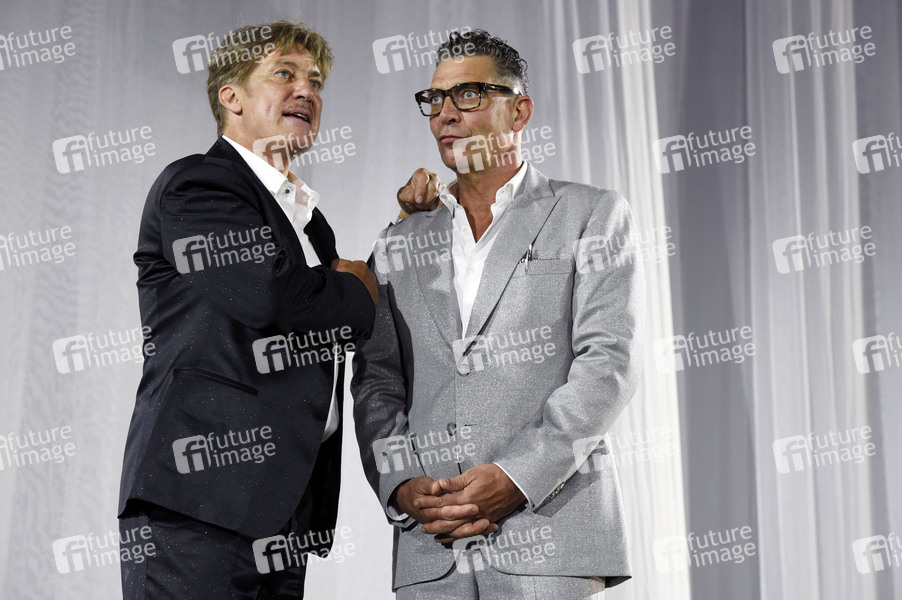 Tobias Moretti und Gregor Bloeb bei der Fotoprobe zum Theaterstück 'Jedermann - Das Spiel vom Sterben des reichen Mannes' bei den Salzburger Festspielen 2020 auf dem Domplatz. Salzburg, 29.07.2020