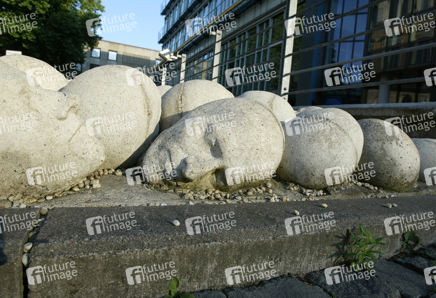 Kunstwerk nach dem Kopf des Künstlers 1980-1994, Feld mit weißen Köpfen aus Stein