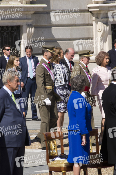 Die Königliche spanische Familie ehrt das Regimiento de Caballeria Acorazado Alcantara Nr.10 am Palacio Real, Madrid