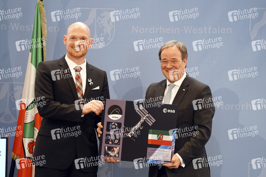 Alexander Gerst und Armin Laschet bei der Verleihung der Verdienstorden des Landes Nordrhein-Westfalen im Präsidentenschlösschen. Düsseldorf, 14.05.2019
