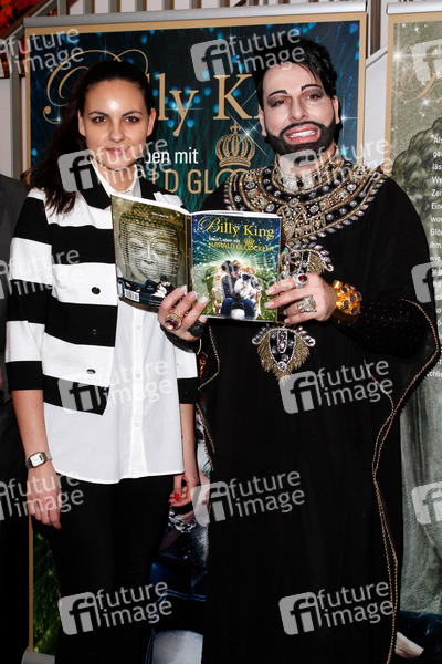 Pelen Boramir und Harald Glööckler bei der Buchvorstellung 'Billy King - mein Leben mit Harald Glööckler'. Berlin, 28.02.2013