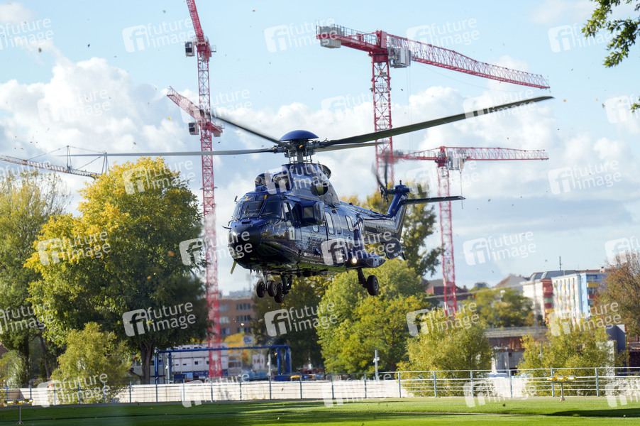 Der Hubschrauber mit Wolodymyr Selenskyj beim Empfang des Präsidenten der Ukraine zum gemeinsamen Gespräch mit dem Bundeskanzler im Bundeskanzleramt. Berlin, 11.10.2024