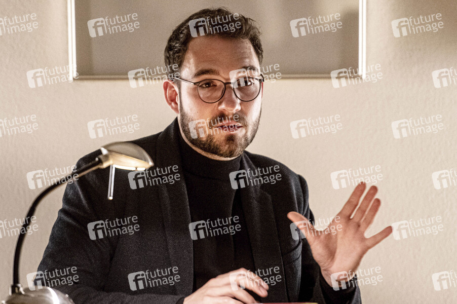 Lukas Rietzschel bei der Lesung aus seinem zweiten Buch 'Raumfahrer' in der Stadtbibliothek. Radeberg,14.10.2021