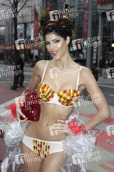 Micaela Schäfer präsentiert ihren persönlichen Berlinale Bären auf dem Boulevard der Stars, Berlin