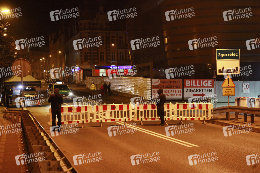 Um Mitternacht schließt Polen wegen der Corona-Krise die Grenze für Ausländer an der Stadtbrücke zwischen Görlitz und Zgorzelec. Görlitz, 15.03.2020