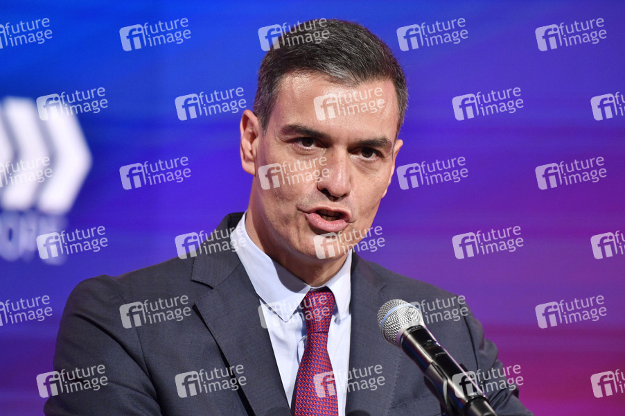 Pedro Sanchez beim Pressestatement zum Auftakt des Europa-Wochenendes der SPE-Konferenz unter dem Motto 'Mit Mut. Für Europa' in der Station Berlin. Berlin, 25.06.2021