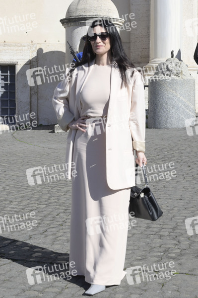 Laura Pausini bei der Ankunft der Teilnehmer vom Festival di Sanremo 2026 zum Empfang beim italienischen Präsidenten auf der Piazza del Quirinale. Rom, 13.02.2026