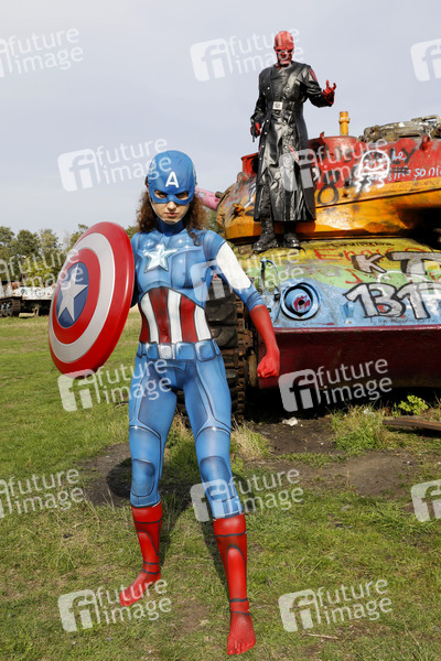 Cosplay, Cosplayer, Bodypainting, Body-Painting, Make-up, Latexappliaktionen, Latexteile, Maskenbildnerei, Maskenbildner Körperkunst, Körperfarben, Projekt Farbkörper, Farbe, Bemalung, Kunst, Malerei, Superheld, Superheldin, Superschurke, Comics, Comicfigur, Marvel, Panzer, Krieg, Kampf, Gut gegen Böse, superhero, super heroine, super villain, tank, war, fight, good versus evil, body painting, body art, project color body, colors