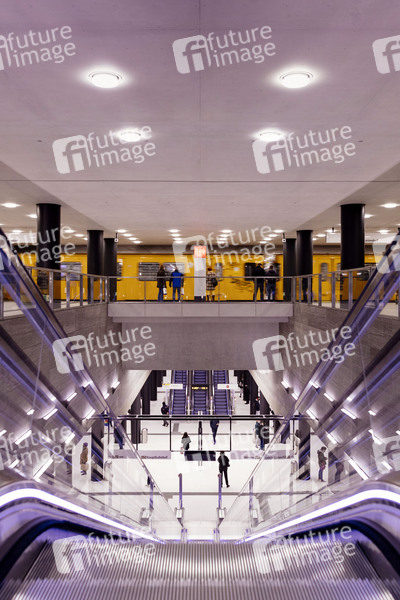 Aufgrund der Coronakrise war 2020 für die BVG ein katastrophales Jahr. Die Zahl der Fahrgäste schrumpfte auf zwei Drittel, die Ertragseinbußen liegen im dreistelligen Millionenbereich. In Bahnen und am Gleis gilt Maskenpflicht. Trotzdem wollen die Berliner Verkehrsbetriebe in den kommenden Jahren extra lange Bahnen mit einer Gesamtlänge von 50 Meter anschaffen. Im Bild die der neue U-Bahnhof 'Unter den Linden'. (Themenbild, Symbolbild) Bild aufgenommen mit Genehmigung der BVG-Pressestelle Berlin, 01.01.2021