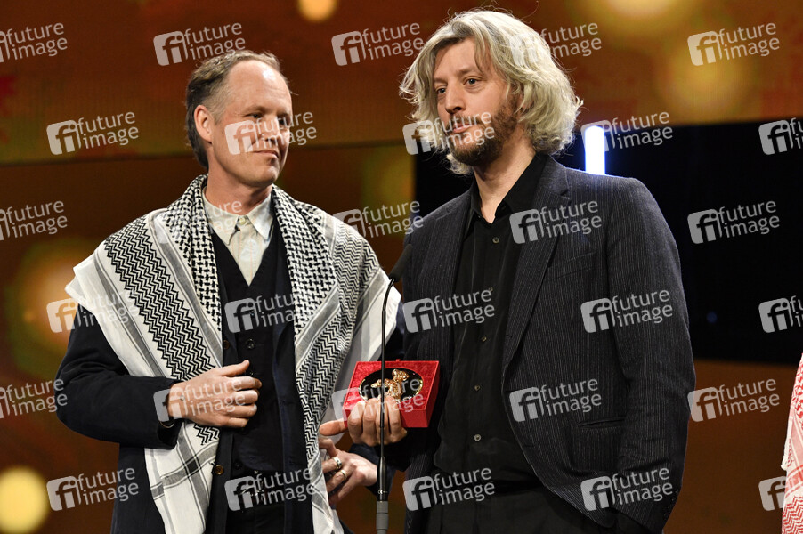 Ben Russell und Guillaume Cailleau mit dem Preis der Jury von Encounters für den besten Film für 'Direct Action' bei der Closing Ceremony mit Preisverleihung auf der Berlinale 2024 / 74. Internationale Filmfestspiele Berlin im Berlinale Palast. Berlin, 24.02.2024