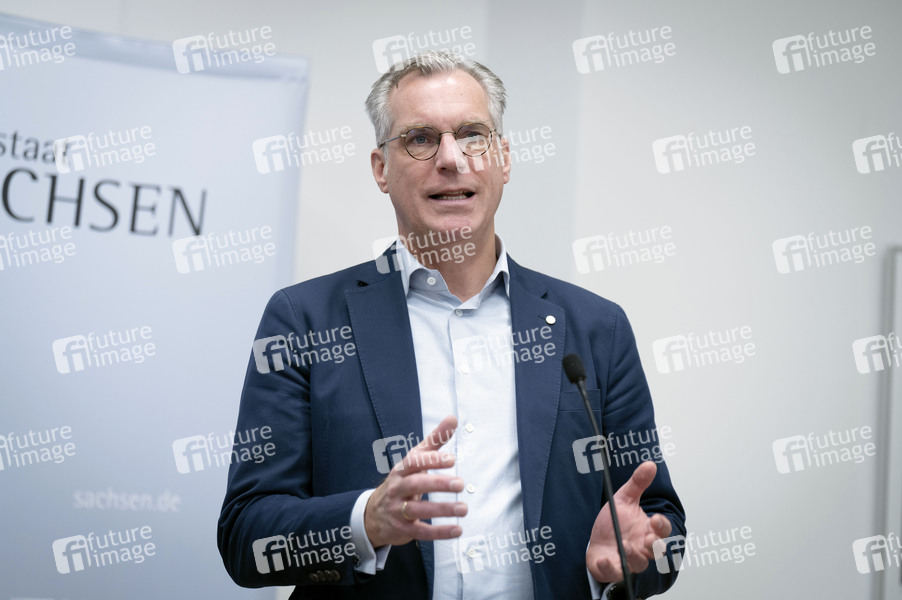 Gunnar Groebler beim Pressestatement zum 2. Mittelständischen Stahlgipfel in der Vertretung des Freistaates Sachsen beim Bund. Berlin, 21.11.2025