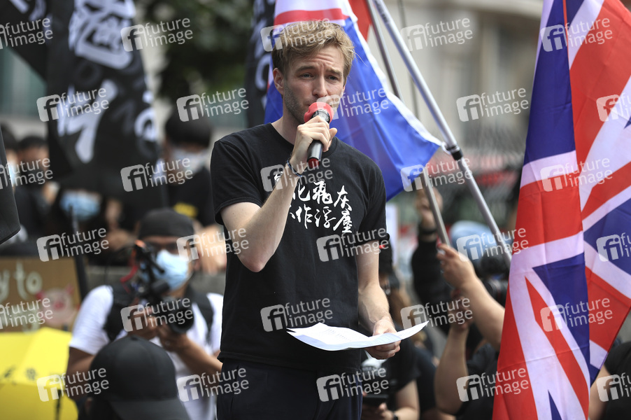 Luke de Pulford spricht auf der Kundgebung anlässlich des zweiten Jahrestages des Beginns der prodemokratischen Proteste, die Hongkong 2019 erschütterten. London, 12.06.2021