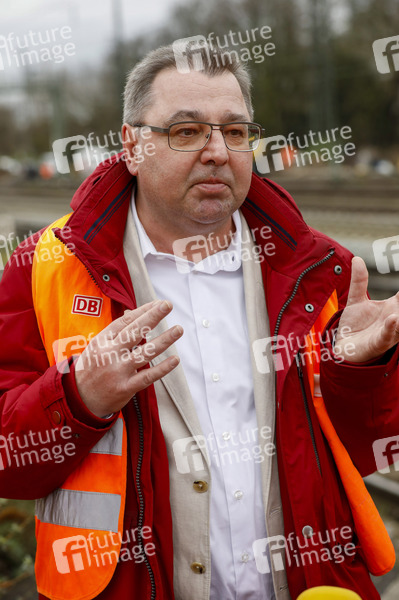 Dirk Pohlmann beim Fototermin 'Endspurt für das Elektronische Stellwerk (ESTW) Linker Rhein' am Bahnhof Köln-West. Köln, 13.03.2024