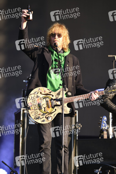 Christof Stein-Schneider von Fury in the Slaughterhouse live beim Autokultur-Konzert auf dem Schützenplatz. Die Besucher verfolgen unter Berücksichtigung klarer Hygiene-Vorschriften während der Corona-Krise den Auftritt aus dem Auto. Hannover, 14.05.2020