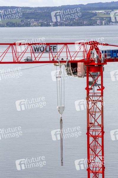 Turmdrehkran am Bodensee für neues städtisches Parkhaus am Fährhafen. Meersburg, 27.05.2020