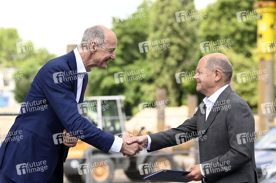 Roland Busch und Olaf Scholz bei der Grundsteinlegung für das zukünftige Quartier Siemensstadt Square am Rohrdamm. Berlin, 25.06.2024