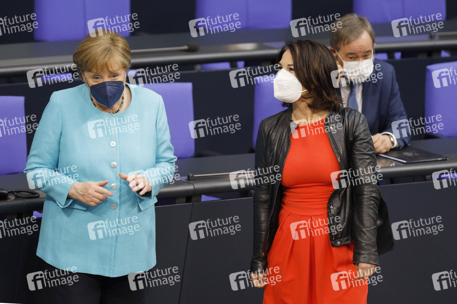 Angela Merkel, Annalena Baerbock und Armin Laschet in der 236. Sitzung des Deutschen Bundestages im Reichstagsgebäude. Berlin, 24.06.2021