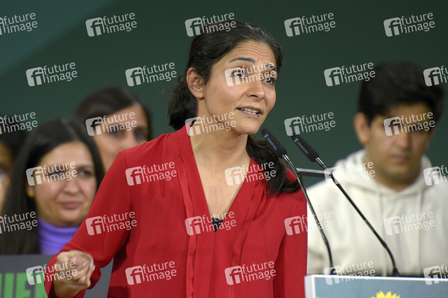Pegah Ferydoni bei einer Solidaritätsbekundung mit den Frauen bei den Protesten im Iran bei der 48. Ordentlichen Bundesdelegiertenkonferenz von Bündnis90/Die Grünen im World Conference Center. Bonn, 15.10.2022