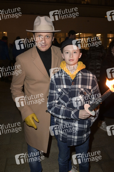 Roman Knizka mit Sohn Leo Knizka beim offiziellen Opening der Baltic Lights 2024 mit Fackellauf und Lagerfeuer an der Alex Strandbar. Heringsdorf, 01.03.2024