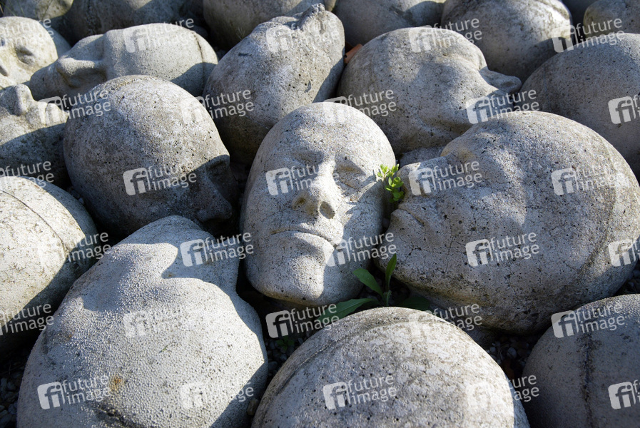 Kunstwerk nach dem Kopf des Künstlers 1980-1994, Feld mit weißen Köpfen aus Stein