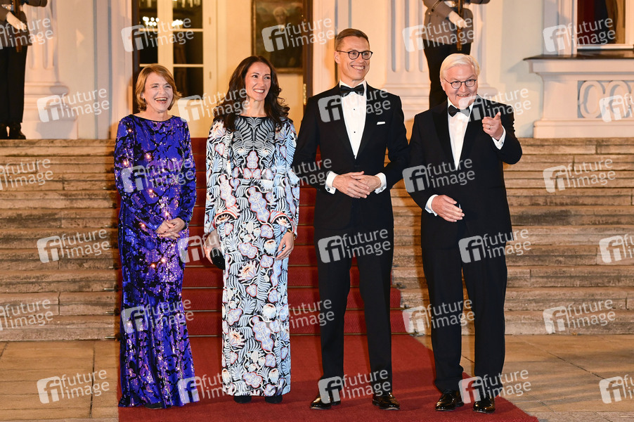 Elke Büdenbender, Suzanne Elizabeth Innes-Stubb, Alexander Stubb und Frank-Walter Steinmeier bei der Ankunft zum Abendessen anlässlich des 25. Jubiläums der Nordischen Botschaften im Schloss Bellevue. Berlin, 21.10.2024