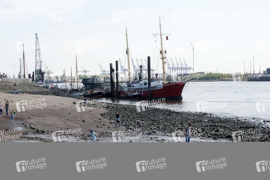 Niedrigwasser am Elbstrand zwischen Övelgönne und Teufelsbrück. Hamburg, 27.04.2020