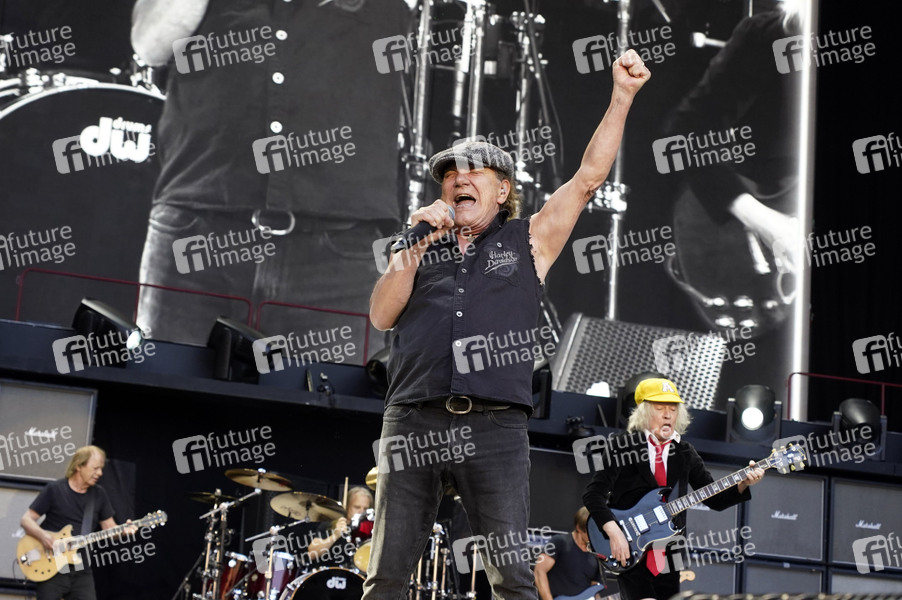 Stevie Young, Matt Laug, Brian Johnson und Angus Young von AC/DC live bei einem Konzert der 'Power Up Tour - Europa 2025' im Olympiastadion Berlin. Berlin, 30.06.2025