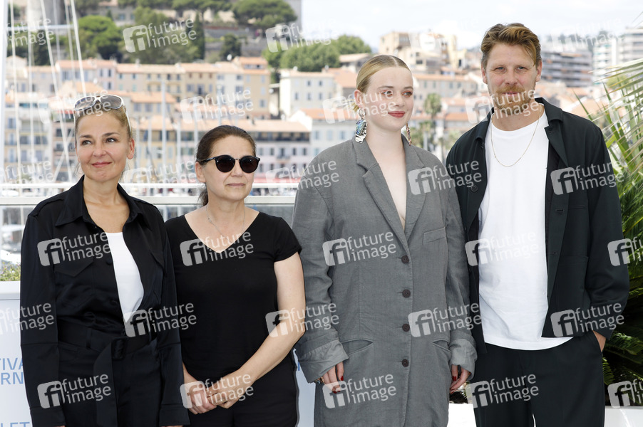 Monika Mecs, Ildiko Enyedi, Luna Wedler und Gijs Naber beim Photocall zum Kinofilm 'A feleségem története / Die Geschichte meiner Frau / The Story of My Wife' auf dem Festival de Cannes 2021 / 74. Internationale Filmfestspiele von Cannes am Palais des Festivals. Cannes, 15.07.2021