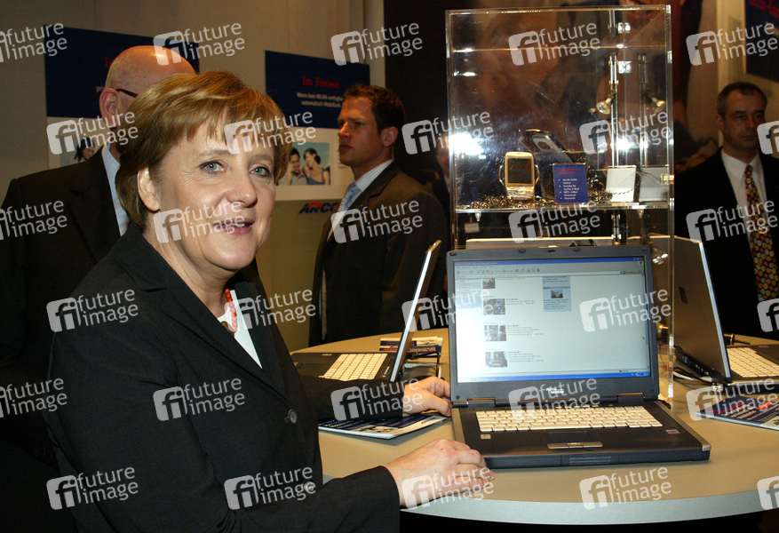 Messerundgang der Bundeskanzlerin Merkel am Eröffnungstag der CeBIT 2006, der weltgrößten Computer- und ITK-Messe.