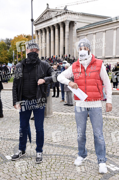 Lothar Schlessmann und Bela Rieger bei der Kundgebung 'Aufstehen für Kultur' auf dem Königsplatz. München, 24.10.2020