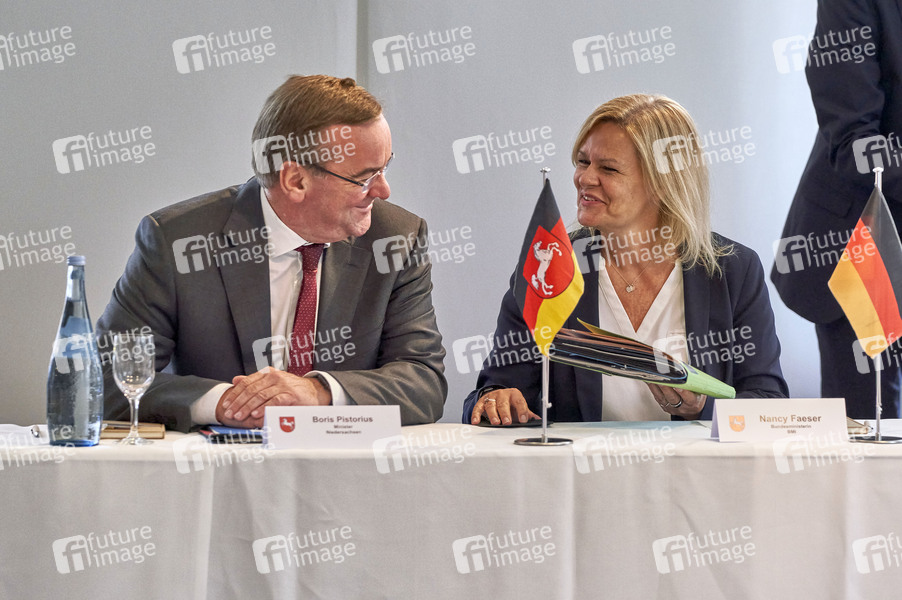Boris Pistorius und Nancy Faeser bei der A-Innenministerkonferenz der SPD-geführten Innenressorts im Alten Rathaus. Hannover, 13.09.2022