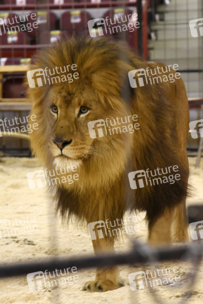 Löwe beim Pre-Presse-Empfang mit kommentierten Raubtiertraining im Circus Krone Bau. München, 26.06.2020