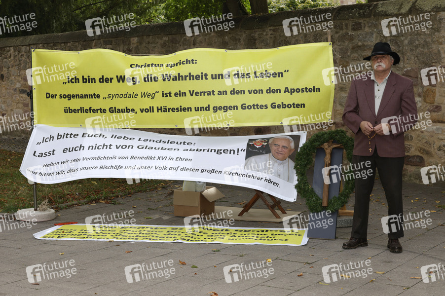 Demonstrant vor dem Tagungshotel der Herbst-Vollversammlung der Deutschen Bischofskonferenz. Fulda, 23.09.2024