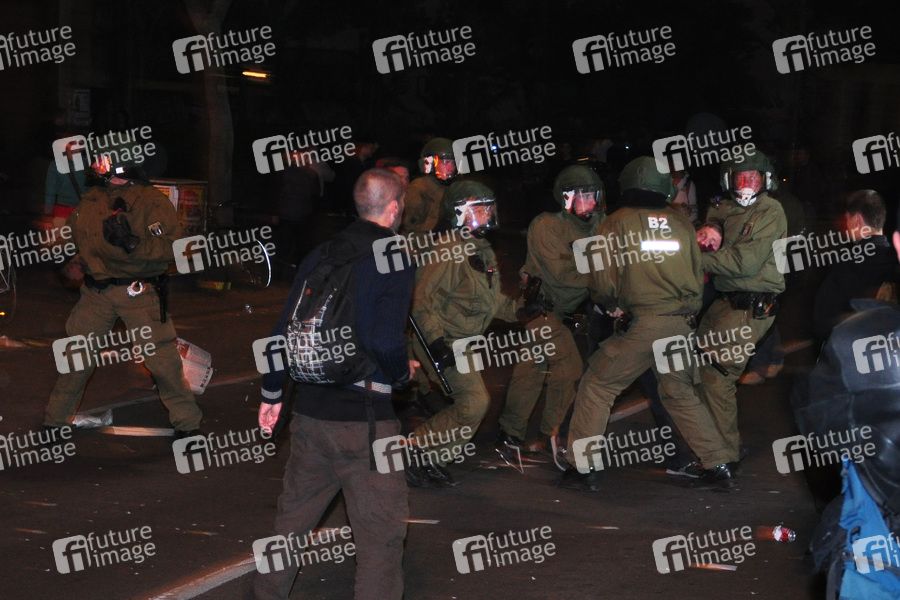 Demo, Demonstranten, Maidemonstration, Polizei, Polizisten, Polizist, Straßenschlacht