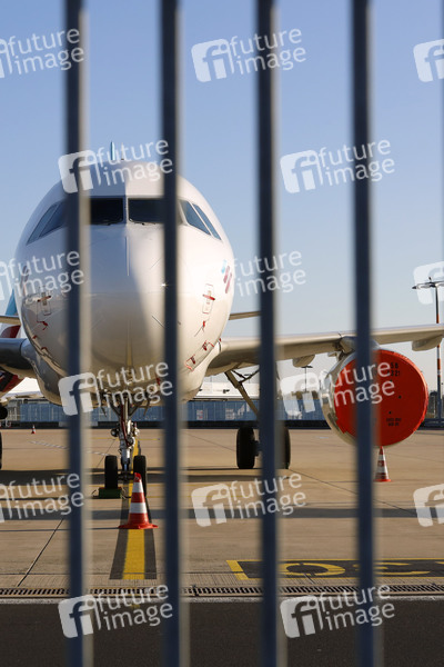 Flugzeug von Eurowings steht während Coronakrise hinter einem Gitterzaun am Köln Bonn Airport. Köln, 30.07.2020