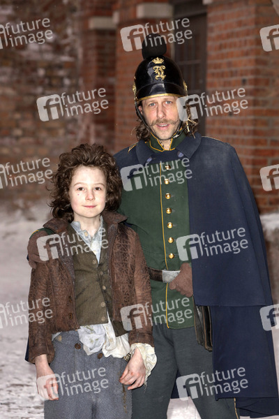 Maximilian Ehrenreich und Oliver Korittke beim Fototermin am Set des Fernsehfilms 'Das Mädchen mit den Schwefelhölzern' aus der ARD-Märchenreihe 'Sechs auf einen Streich' in der Zitadelle Spandau. Berlin, 18.03.2013