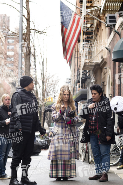 Sara Ramirez und Sarah Jessica Parker bei den Dreharbeiten zur HBO Max Streaming-Serie 'And Just Like That....', der Nachfolgeserie zu 'Sex and the City' in der Upper East Side. New York, 02.03.2023