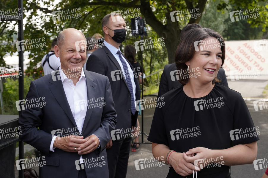 Olaf Scholz und Annalena Baerbock bei der Veranstaltung 'Frauen Stimmen Gewinnen' im Hans Otto Theater. Potsdam, 13.08.2021