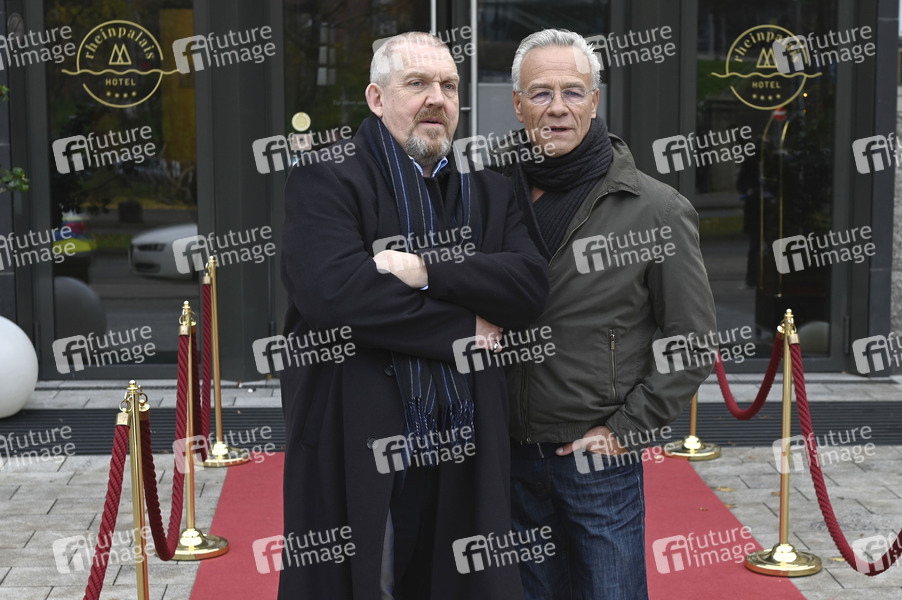 Dietmar Bär und Klaus J. Behrendt beim Fototermin am Set des 80. Tatorts aus Köln 'Tatort - Der Tod der Anderen' am Hotel Rheinpalais. Köln, 27.11.2019