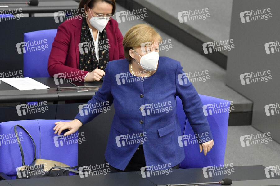 Angela Merkel in der 212. Sitzung des Deutschen Bundestages im Reichstagsgebäude. Berlin, 25.02.2021