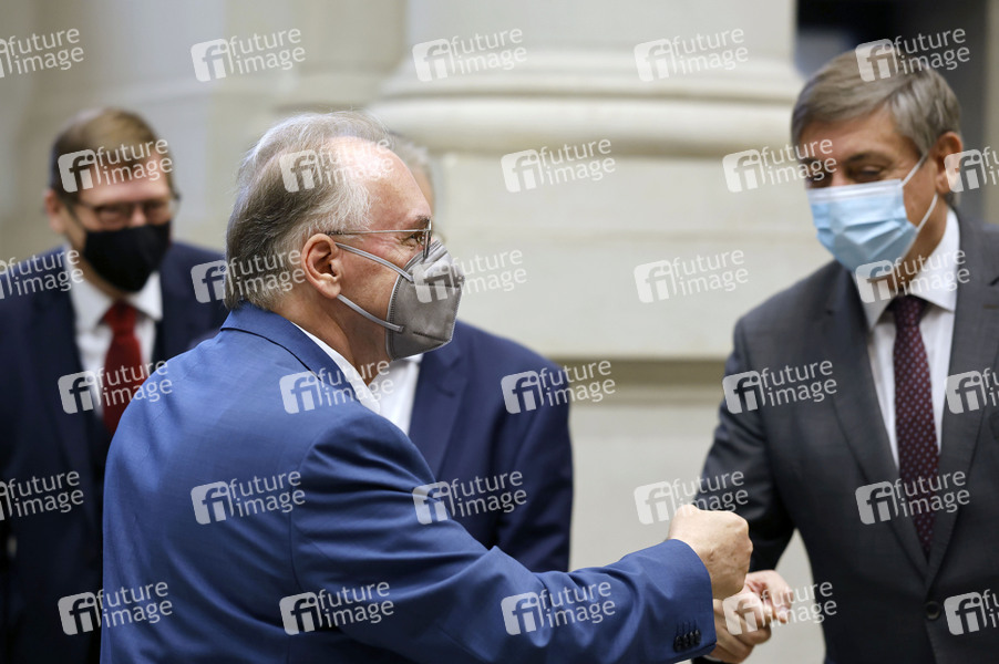 Reiner Haseloff und Jan Jambon beim Fototermin vor der 1010. Sitzung des Deutschen Bundesrates im Bundesratsgebäude. Berlin, 05.11.2021