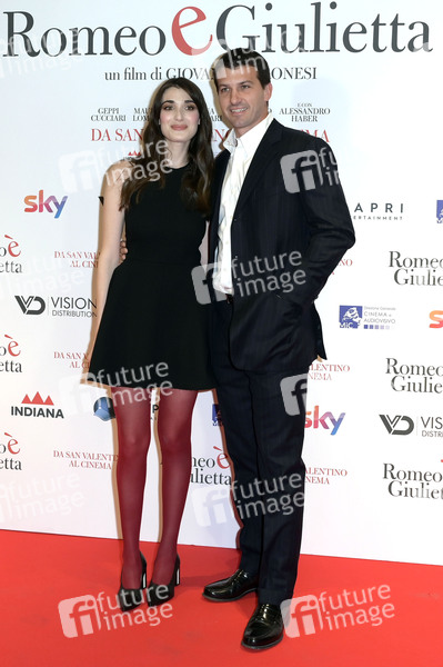 Pilar Fogliati mit Partner Severiano Recchi bei der Premiere des Kinofilms 'Romeo è Giulietta' im Space Cinema Moderno. Rom, 14.02.2024