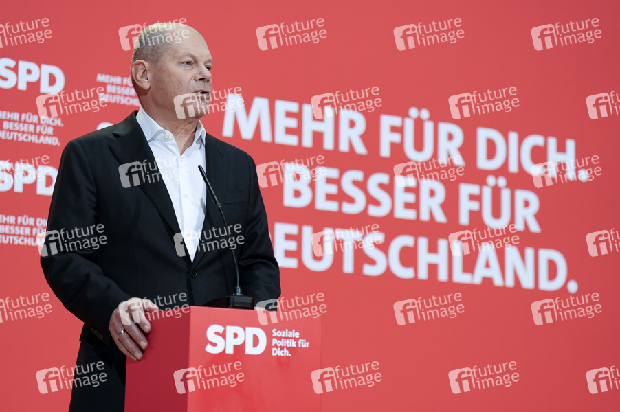 Olaf Scholz beim Pressestatement zum Jahresauftakt des SPD-Präsidiums im Willy-Brandt-Haus. Berlin, 05.01.2025
