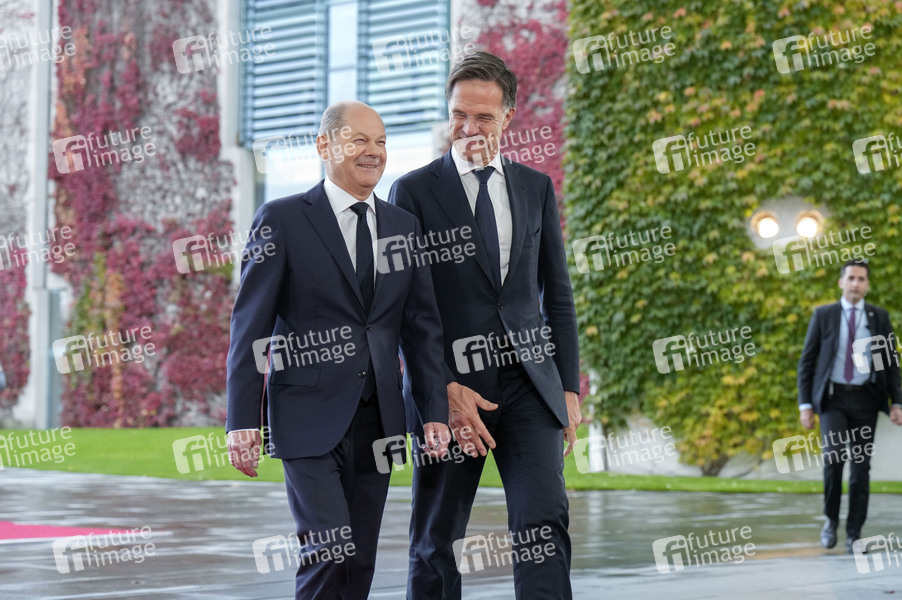 Olaf Scholz und Mark Rutte beim Empfang des NATO-Generalsekretärs mit militärischen Ehren und zu einem gemeinsamen Gespräch mit anschließendem Pressestatement im Bundeskanzleramt. Berlin, 04.11.2024