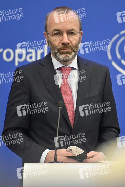 Manfred Weber beim Pressebriefing Fraktion der Europäischen Volkspartei im Europäischen Parlament. Straßburg, 05.04.2022