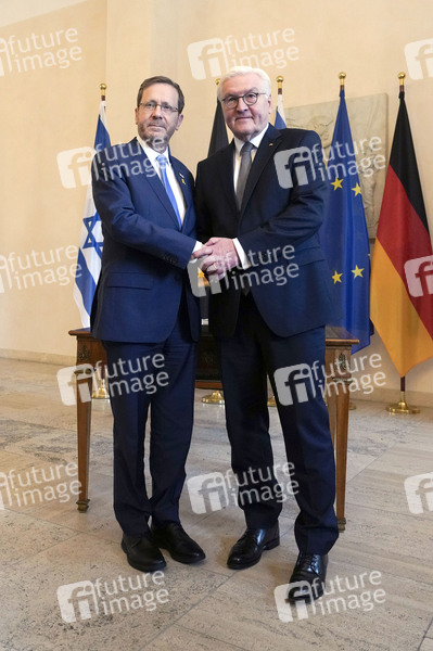 Isaac Herzog und Frank-Walter Steinmeier beim Empfang des Präsidenten des Staates Israel zu einem gemeinsamen Gespräch mit dem Bundespräsidenten und zum Eintrag ins Gästebuch im Schloss Bellevue. Berlin, 16.02.2024
