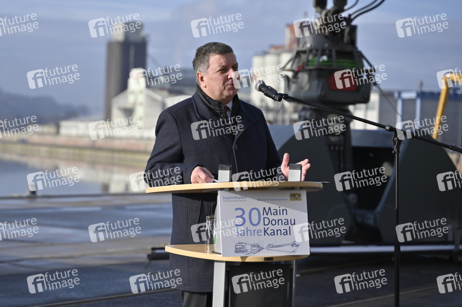 Christian Bernreiter bei der Jubiläumsveranstaltung '30 Jahre Main-Donau-Kanal' am Bamberger Hafen. Bamberg, 25.11.2022