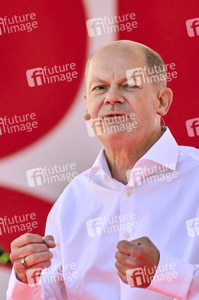 Olaf Scholz bei einer SPD-Wahlkampfkundgebung im Rahmen der 'Scholz packt das an'-Tour anlässlich der bevorstehenden Bundestagswahl auf dem Bebelplatz. Berlin, 27.08.2021