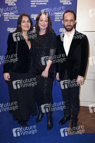 Düzen Tekkal, Natalia Wörner und Igor Levit bei der 23. Verleihung des Preises für Verständigung und Toleranz 2024 im Glashof des Jüdischen Museums. Berlin, 16.11.2024